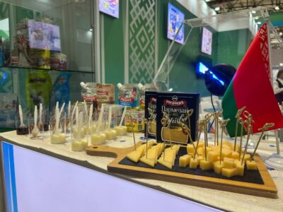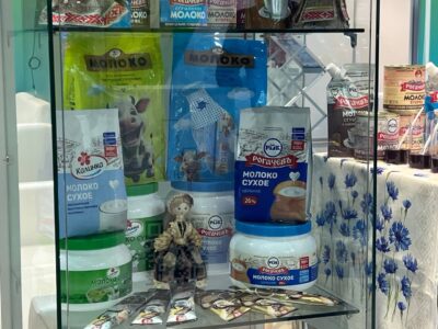В рамках выставки представлены молочные консервы, масло, сыр и новинки от филиала «Калинковичский молочный комбинат» — смесь сухая для молочного мороженого и сухие молочные напитки.